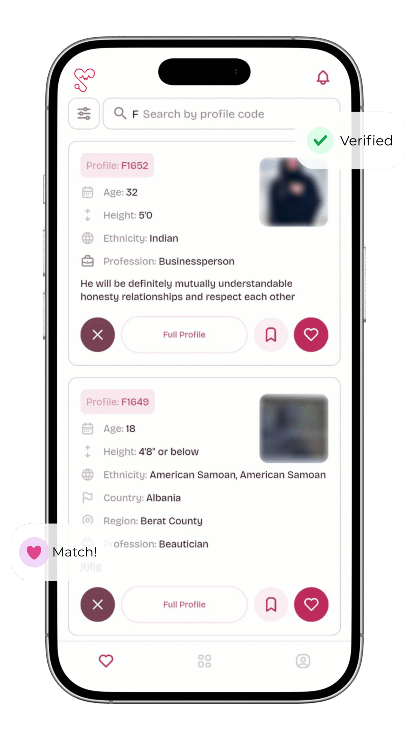 Each profile is verified for authenticity and serious marriage intent. No casual browsing—no swiping.